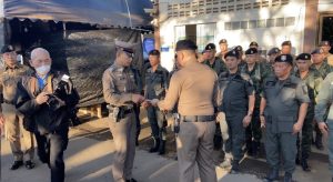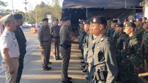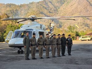 พร้อมด้วยเจ้าหน้าที่ตำรวจสภ.ทองผาภูมิ , ตชด.135 , ฝ่ายปกครอง , ทหาร ฉก.ลาดหญ้า รอต้อนรับคณะ
