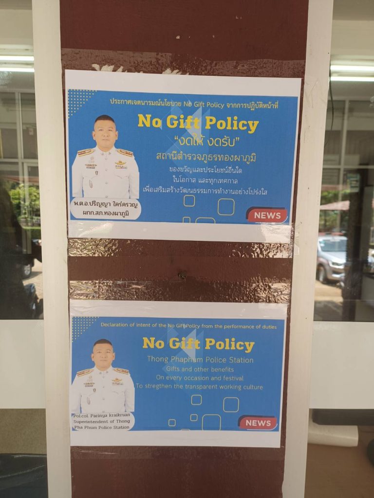 นโยบายไม่รับของขวัญและของกำนัลทุกชนิด (No Gift Policy) จากการปฏิบัติหน้าที่
