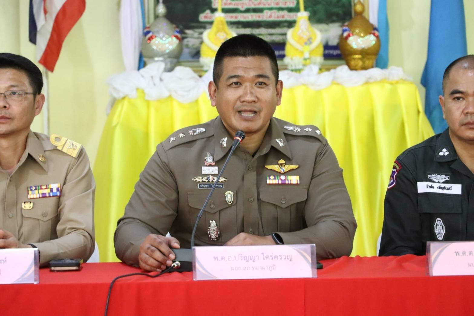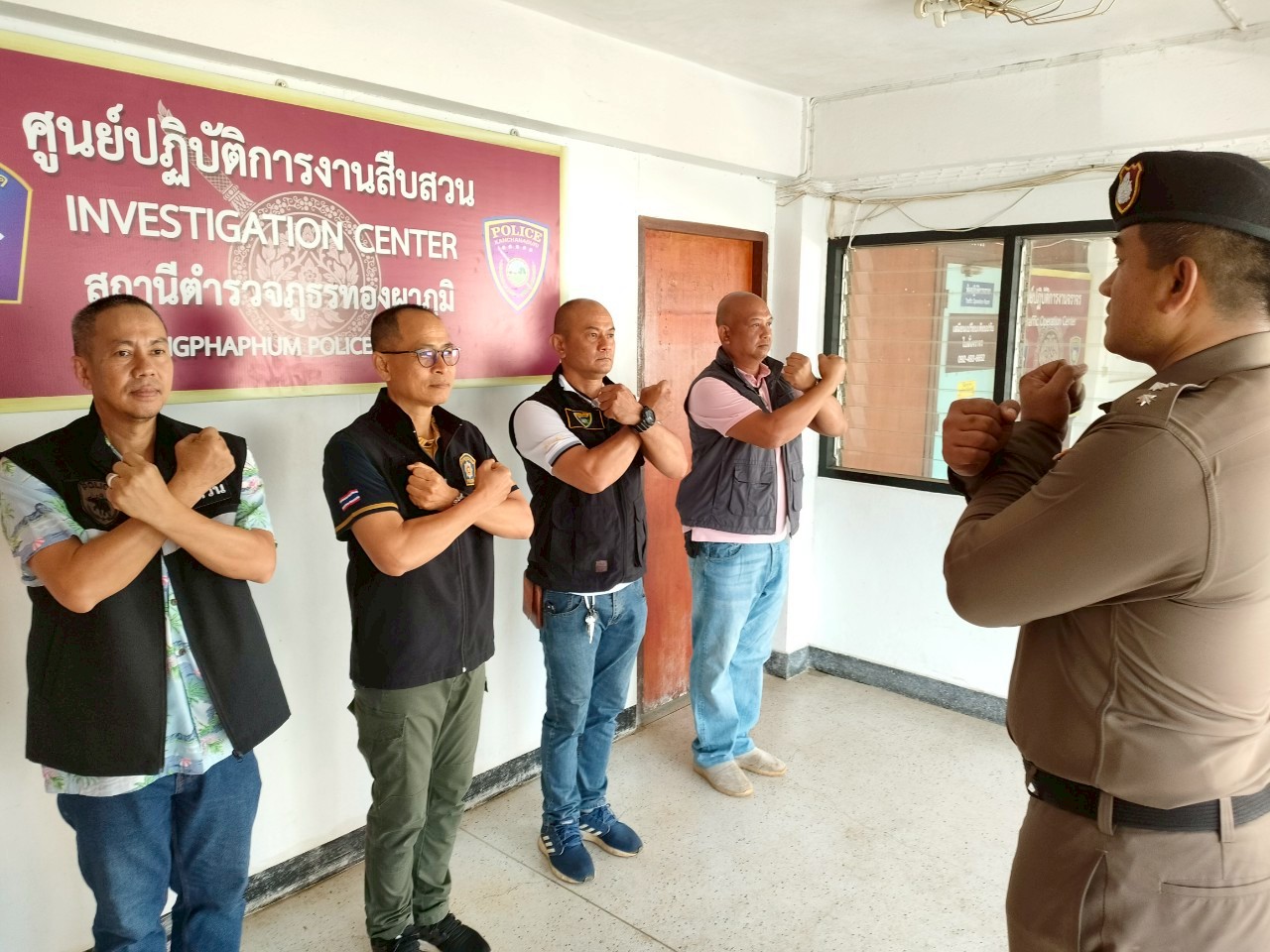 พ.ต.อ.ปริญญา ใคร่ครวญ ผกก.สภ.ทองผาภูมิ พ.ต.ท.วงศกร หลงกุล รอง ผกก.(สอบสวน) สภ.ทองผาภูมิ พร้อมด้